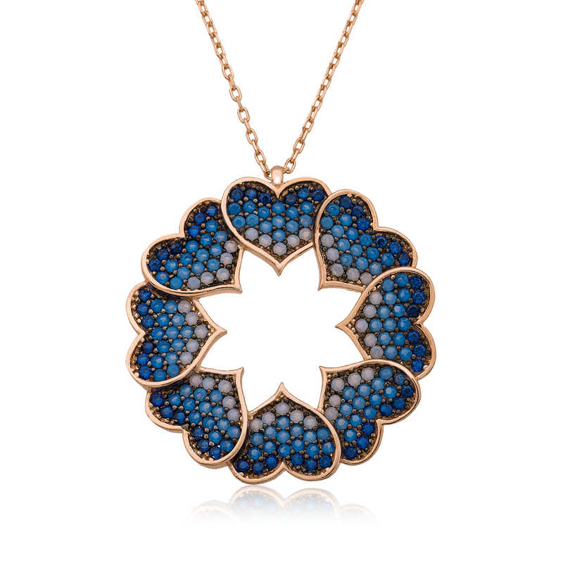 Aşkın ve sevginin simgesi kalpli bayan kolye ile sevdiğiniz kişiye hem anlamlı hem de güzel bir hediye verebilirsiniz. Dünyanın dört bir yanında herkesin birbirine sevgi sözcükleri söylediği sevgililer gününde siz de sevgilinize aşkınızı ilan eden bu kalp çemberi kolyeyi hediye edebilirsiniz. Gümüş kalp çemberi bayan kolye 925 ayar gümüşten imal edilmiştir. Gümüş üzerine rose altın kaplama yapılmıştır. Rose altın kaplama yapılan gümüş bayan kolye modelleri parlaklığını uzun süre muhafaza eder, gümüşe pembe rengi verir ve oksitlenmesi gecikir. Kolye üzerinde bulunan taşlar zirkondur. Gümüş olan zincir boyu ortalama 45 cm"dir. Tüm gümüş bayan kolye modellerinde olduğu gibi gümüş kalp çemberi kolye modeli de el emeği ile üretilmiştir. Gümüş ve değerli taşlar nedeniyle belirtilen ürün ağırlığında ± %10 sapma olabilmektedir.