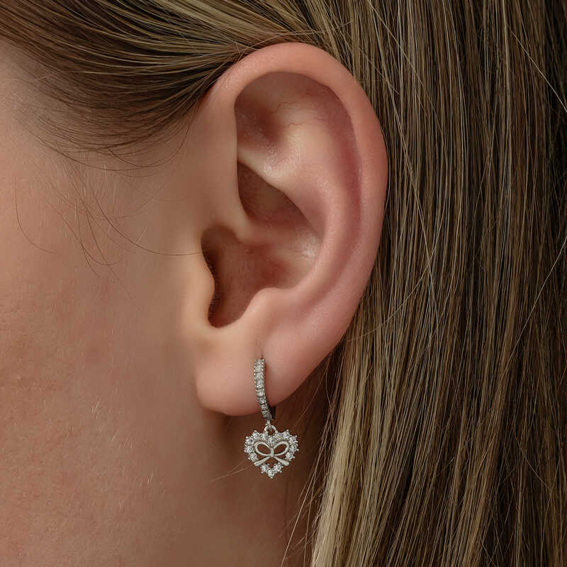Gümüş Kalp Kurdele Sallantılı Kadın Küpe