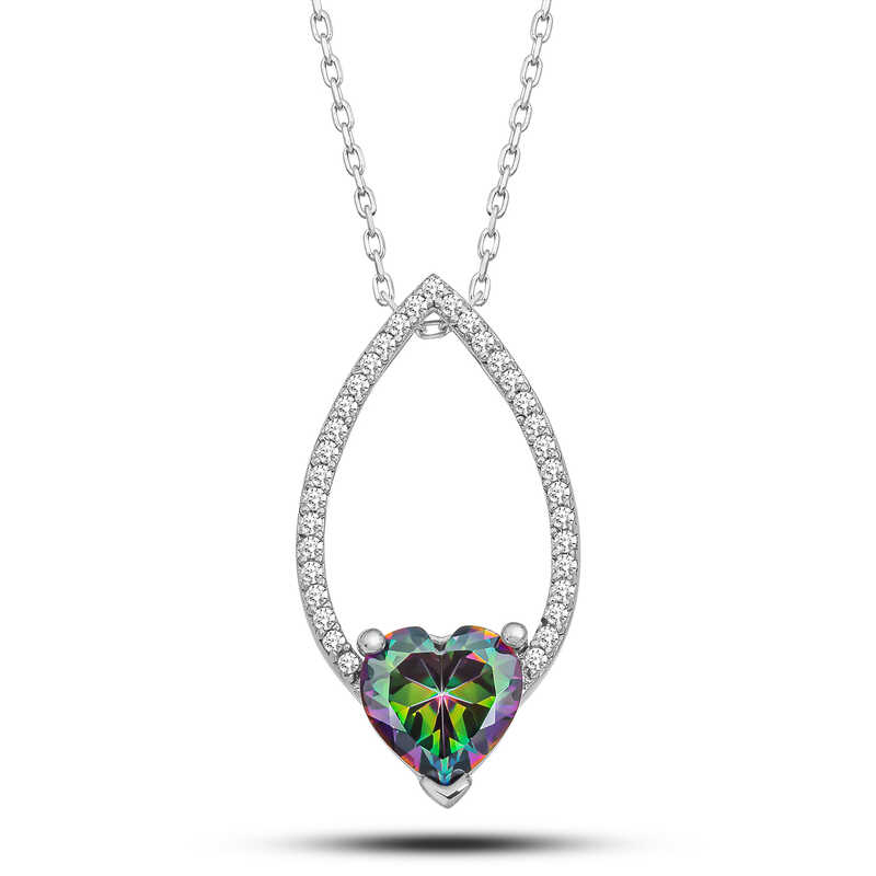 Gümüş Kalp Mistik Topaz Taşlı Damla Kadın Kolye