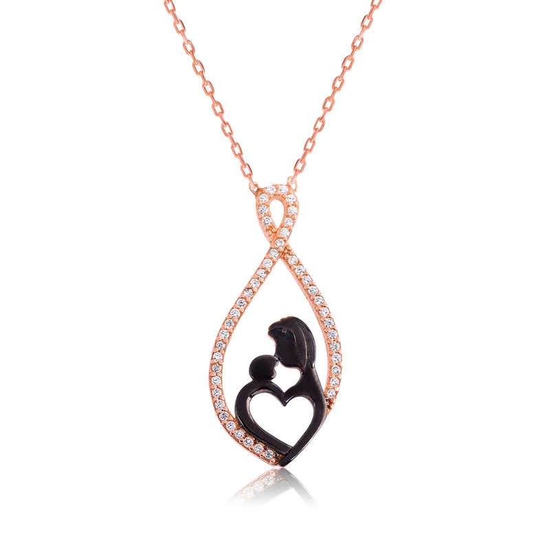 Çocuk ve anne arasındaki sevgiyi temsil eden özel bir tasarımdır. Annenize olan bağlılığınızı belirtmek için alabileceğiniz en uygun hediyelerden biri bu anne çocuk sevgisi kolye olacaktır. Anneniz için tasarlanan bu özel tasarım kalpli anne çocuk kolyesi 925 ayar gümüşten imal edilmiştir. Gümüş üzerine rose kaplama yapılmıştır. Rose kaplama yapılan gümüş anne çocuk kolye modelleri parlaklığını uzun süre muhafaza eder ve oksitlenmesi gecikir. Kolye üzerinde bulunan taşlar zirkondur. Gümüş olan zincir boyu ortalama 45 cm’dir. Gümüş kalpli anne çocuk kolyesi el emeği ile üretilmiştir. Gümüş ve değerli taşlar nedeniyle belirtilen ürün ağırlığında ± %10 sapma olabilmektedir.