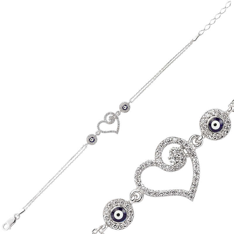 Kalp deseniyle aşkı ifade eden gümüş kalpli bayan bileklik ile sevginiz, sevdiğiniz kadının teninde hayat bulsun. Genç sevgililerin ve kendini genç hissedenlerin özel günlerde seçebileceği bu kalpli bayan bileklik ile sevdiğinizin bileğini aşkla süsleyin. Sizin olduğu kadar sevdiklerinizin de keyifle takacağı kalpli bayan bileklik sevdiğinize en güzel hediyelerden biri olacaktır. Kalpli bayan bileklik 925 ayar gümüşten imal edilmiştir. Gümüş üzerine rodyum kaplama yapılmıştır. Rodyum kaplama yapılan gümüş bileklikler parlaklığını uzun süre muhafaza eder ve oksitlenmesi gecikir. Bileklik üzerinde bulunan beyaz taşlar zirkondur. Tüm bayan bileklik modellerinde olduğu gibi gümüş kalpli bayan bileklik modeli de el emeği ile üretilmiştir. Gümüş ve değerli taşlar nedeniyle belirtilen ortalama ürün ağırlığında ± %10 sapma olabilmektedir.