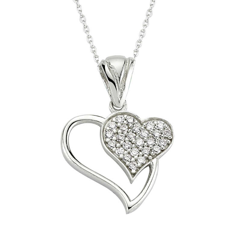 İç içe iki kalpten oluşan bu şık kalpli bayan kolye modeli 925 ayar gümüşten imal edilmiştir. Gümüş üzerine rodyum kaplama yapılmıştır. Rodyum kaplama yapılan gümüş bayan kalpli kolye modelleri parlaklığını uzun süre muhafaza eder ve oksitlenmesi gecikir. Kolye ile birlikte gelecek gümüş olan zincir uzunluğu 45 cm’dir. Tüm bayan kolye modellerinde olduğu gibi gümüş kalpli bayan kolye modeli de el emeği ile üretilmiştir. Gümüş ve değerli taşlar nedeniyle belirtilen ortalama ürün ağırlığında ± %10 sapma olabilmektedir.