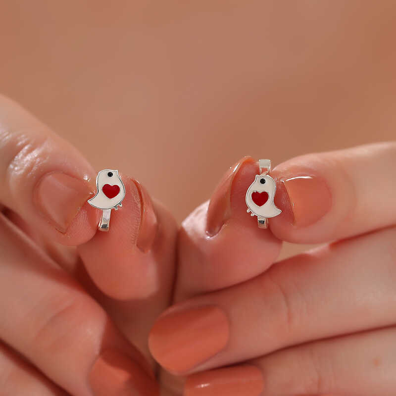 Gümüş Kalpli Kuş Çocuk Küpesi