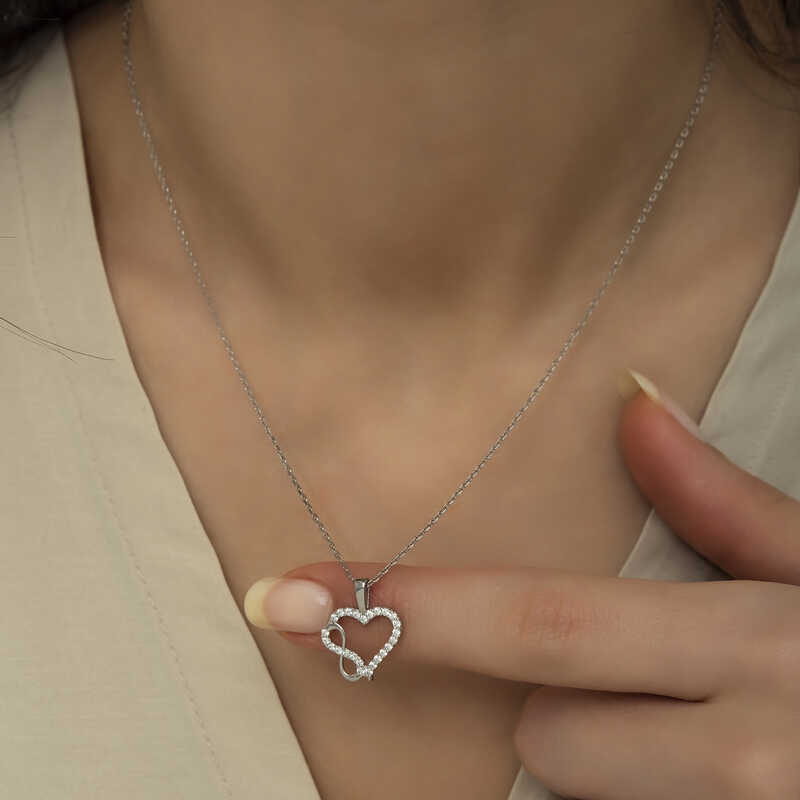 Gümüş Kalpli Sonsuzluk Bayan Kolye