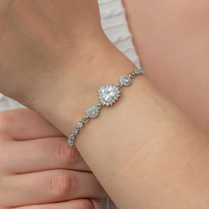 Gümüş Kalpli Su Yolu Kadın Bileklik