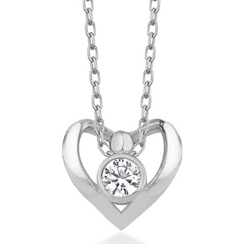Gümüş Kalpli Tek Taş Kadın Kolye