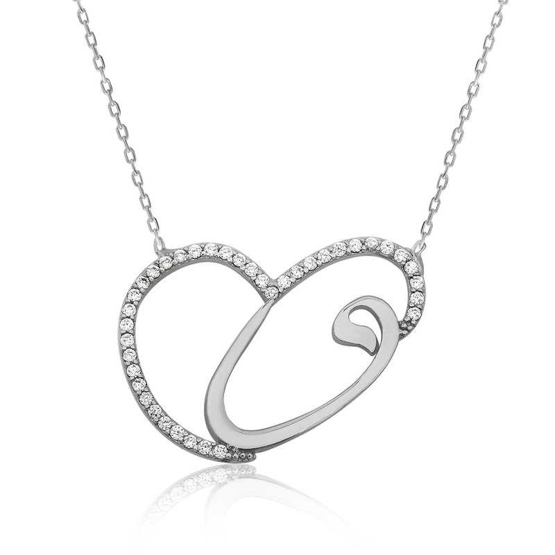 ""Vav"" harfi inanların kulluğunu simgeleyerek yaratıcısına en yakın olduğu halidir. Bu sebeple kullanılan ""Vav gibi olmak"" tabiri, ""kulluğunu bilmek ve secde etmek"" anlamına gelmektedir. Ayrıca anne karnındaki cenine de benzetilen Vav harfi Allah"ın Vahid ismini ve ""bir"" olduğunu da simgelemektedir. Alllah"a kulluğun manası ""Vav""dadır ve kainatın kendisidir. Hem sizin, hem sevdiklerinizin keyifle takacağı manevi anlamı yüksek olan bu gümü kalpli vav bayan kolye modeli tercih edilebilecek en iyi kolyelerdendir. Gümüş kalpli vav bayan kolye modeli 925 ayar gümüşten imal edilmiştir. Gümüş üzerine rodyum kaplama yapılmıştır. Rodyum kaplama yapılan gümüş kalpli vav bayan kolye modelleri parlaklığını uzun süre muhafaza eder ve oksitlenmesi gecikir. Kolye üzerinde bulunan beyaz taşlar zirkondur. Gümüş olan zincir boyu ortalama 45 cm"dir. Tüm bayan kolye modellerinde olduğu gibi gümüş kalpli vav bayan kolye modeli de el emeği ile üretilmiştir. Gümüş ve değerli taşlar nedeniyle belirtilen ortalama ürün ağırlığında ± %10 sapma olabilmektedir