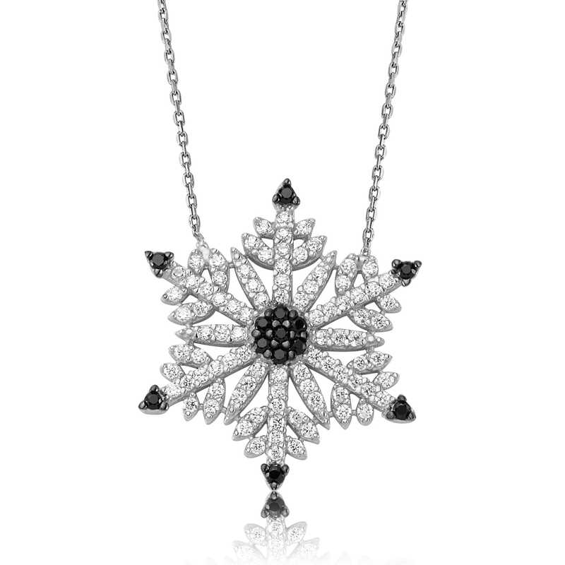 Kadınların ışıltısı, berraklığı kar tanesine benzetilip özel olarak tasarlanmıştır. Kar tanelerinin her birinin kadınlar gibi eşsiz ve ayrı kıymette olması onları özel kılan bir diğer özelliktir. Asilliği her dönemde dikkat çekmeyi başarmıştır. Bunun yanında insanların tıpkı kar taneleri gibi birbirlerine zarar vermeden de mutlu bir şekilde yaşayabileceklerini sembolize etmektedir. Bu şık kolye; doğum günü hediyesi, sevgililer günü hediyesi veya annelere hediye olarak özel günlerde tercih edilebilecek mükemmel bir seçenektir. Kolye, 925 ayar gümüşten imal edilmiştir. Gümüş üzerine rodyum kaplama yapılmıştır. Rodyum kaplama yapılan gümüş kadın kolye modelleri parlaklığını uzun süre muhafaza eder, oksitlenmesi gecikir. Zincir boyu ortalama 45 cm"dir. Tüm gümüş kadın kolye modellerinde olduğu gibi bu gümüş kar tanesi kadın kolye de tamamı el emeği ile üretilmiştir. Gümüş ve değerli taşlar nedeniyle belirtilen ortalama ürün ağırlığında ± %10 sapma olabilmektedir.