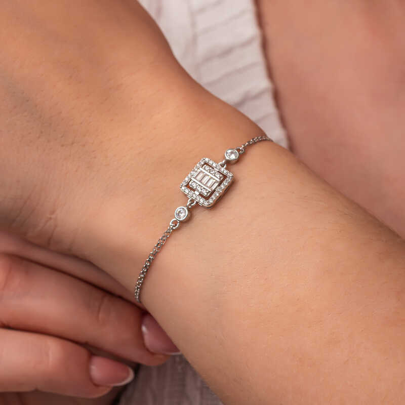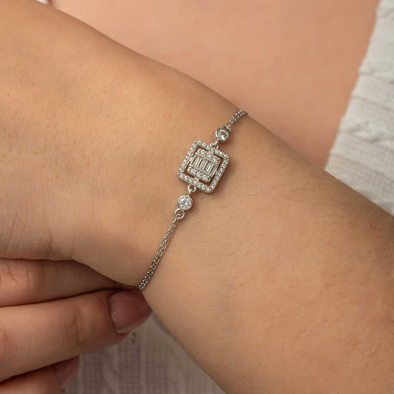 Gümüş Kare Baget Taşlı Kadın Bileklik
