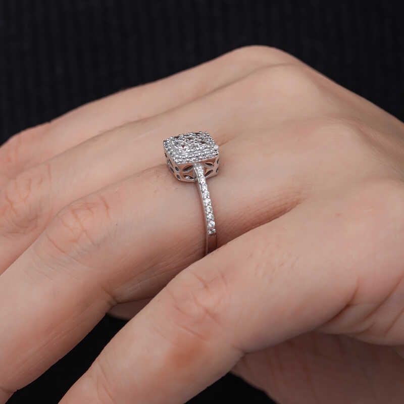 Gümüş Kare Zirkon Taşlı Kadın Yüzük
