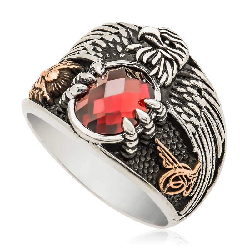 Kuşların kralı olan ve savaşmak üzere dünyaya inen kartal, özellikle savaşçı ve güçlü olmasıyla tanınır; bu yüzden pek çok ulusun sembolü olmuştur. Bu derin anlamdan esinlenerek oluşturulan kartal erkek yüzük; kendinize yada sevdiklerinize doğum gününde, babalar gününde yada özel günlerde hediye edebilirsiniz. Bu şık erkek yüzük 925 ayar gümüşten imal edilmiştir. Gümüş üzerine oksit kaplama yapılmıştır. Oksit kaplama yapılan yüzükler parlaklığını uzun süre muhafaza eder. Tüm erkek yüzüklerde olduğu gibi gümüş kartal erkek yüzük modeli de el emeği ile üretilmiştir. Gümüş ve değerli taşlar nedeniyle belirtilen ortalama ürün ağırlığında ± %10 sapma olabilmektedir.