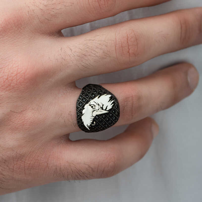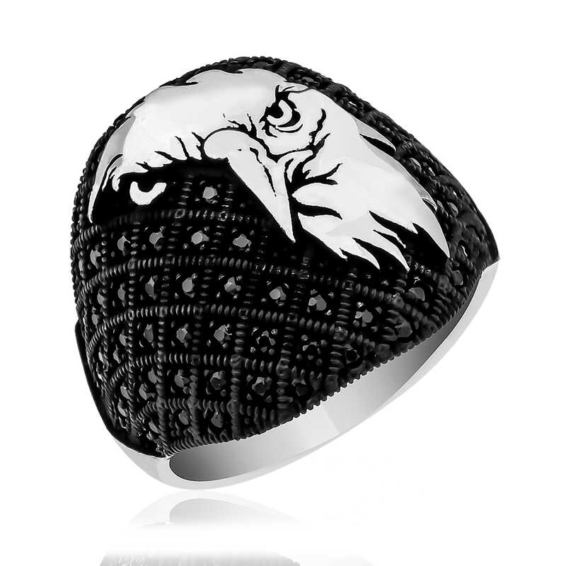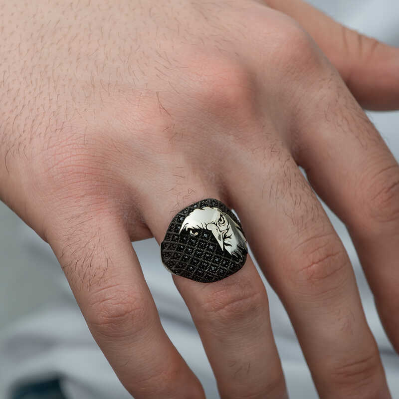 Gümüş Kartal Kafası Figürlü Erkek Yüzük
