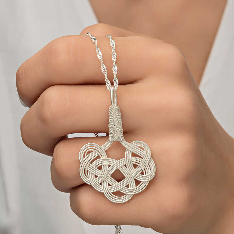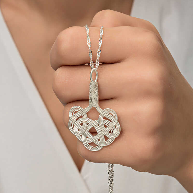 Gümüş Kazaziye Örgü Kadın Kolye