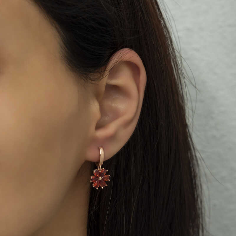 Gümüş Kırmızı Çiçek Bayan Küpe