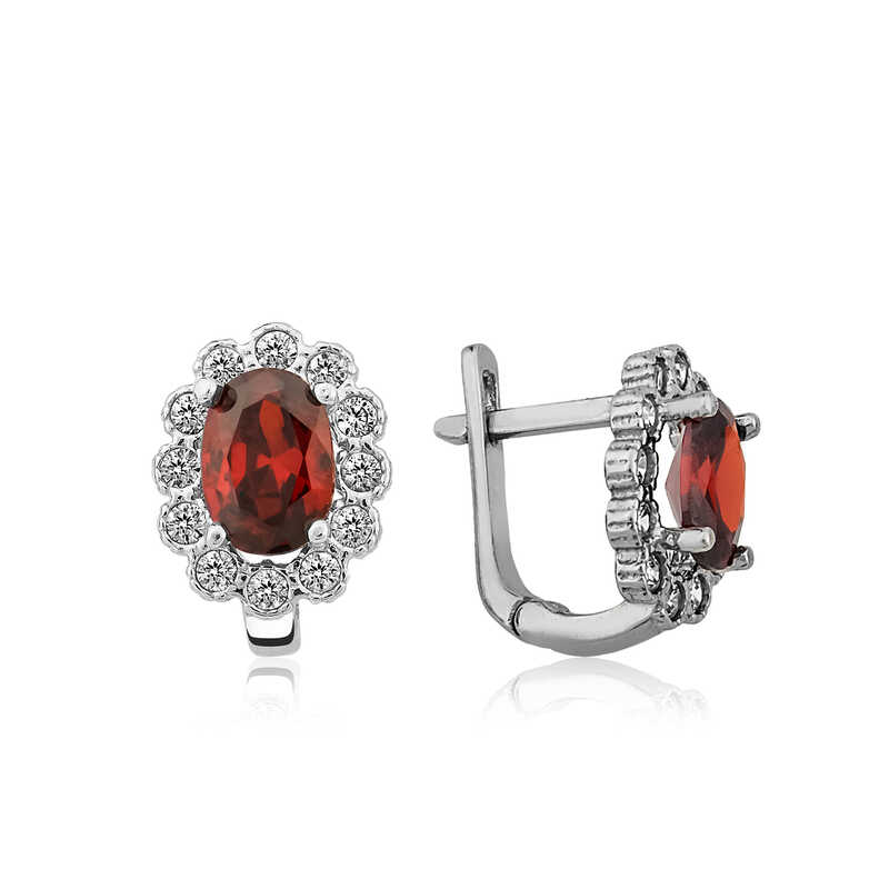 Gümüş Kırmızı Çiçek Desenli J Bayan Küpe