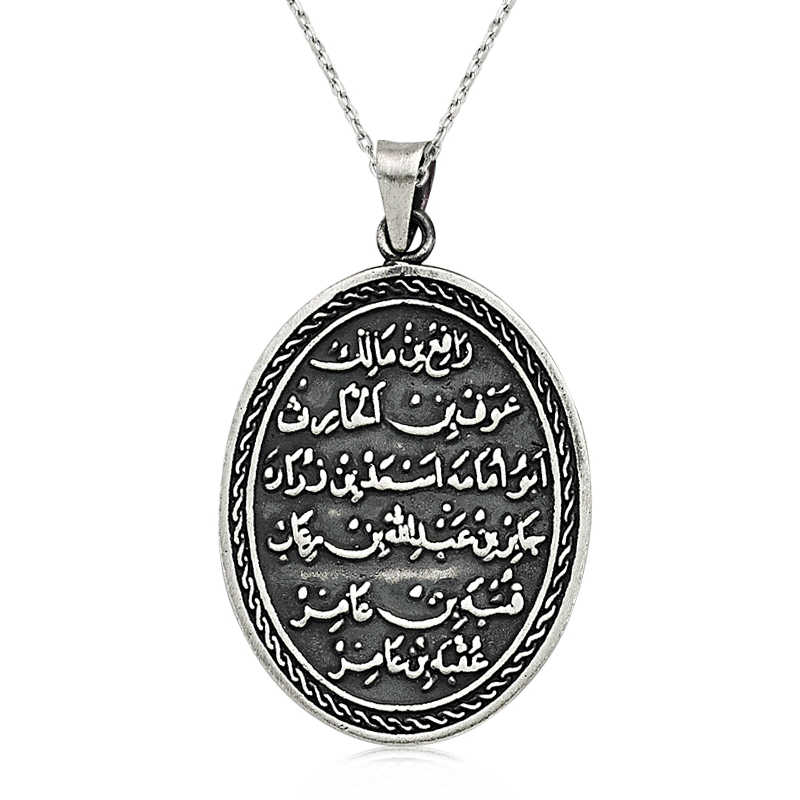 Üzerinde Kalem Suresi 51. ve 52. Ayetler, Ashab-i Kehfin isimleri ve ortada da "kıtmir" yazısı bulunmaktadir. Kolye üzerinde "nazar ayeti" ve Ashab-ı Kehf"in isimleri bulunmaktadır. Nazar ve diğer kötülüklerden korunmak için, evde veya iş yerinde bereketi arttırmak için bu duayı okumanın iyi geleceğine inanılır. Bereketin artması için, iş yerinin ve evin dört duvarına asılması gereken bir duadır. Bu şık kolye modeli 925 ayar gümüşten imal edilmiştir. Gümüş üzerine oksit kaplama yapılmıştır. Oksit kaplama yapılan bayan kolyeler parlaklığını uzun süre muhafaza eder. Tüm gümüş bayan kolyelerde olduğu gibi gümüş Kıtmir duası oval kolye modeli de el emeği ile üretilmiştir. Gümüş ve değerli taşlar nedeniyle belirtilen ortalama ürün ağırlığında ± %10 sapma olabilmektedir.