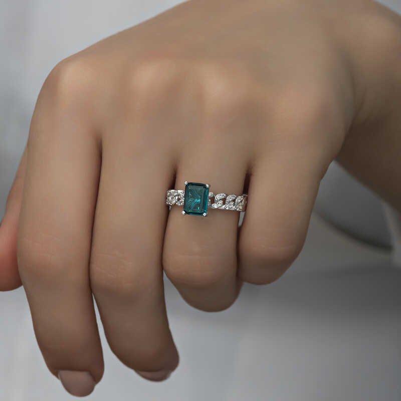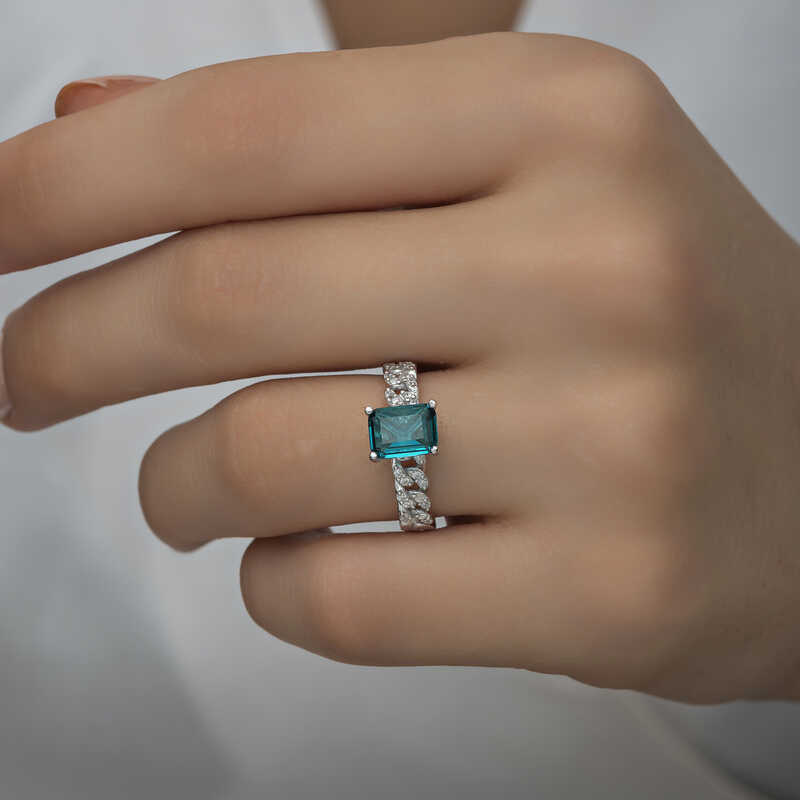 Gümüş Koyu Yeşil Baget Taşlı Kadın Yüzük