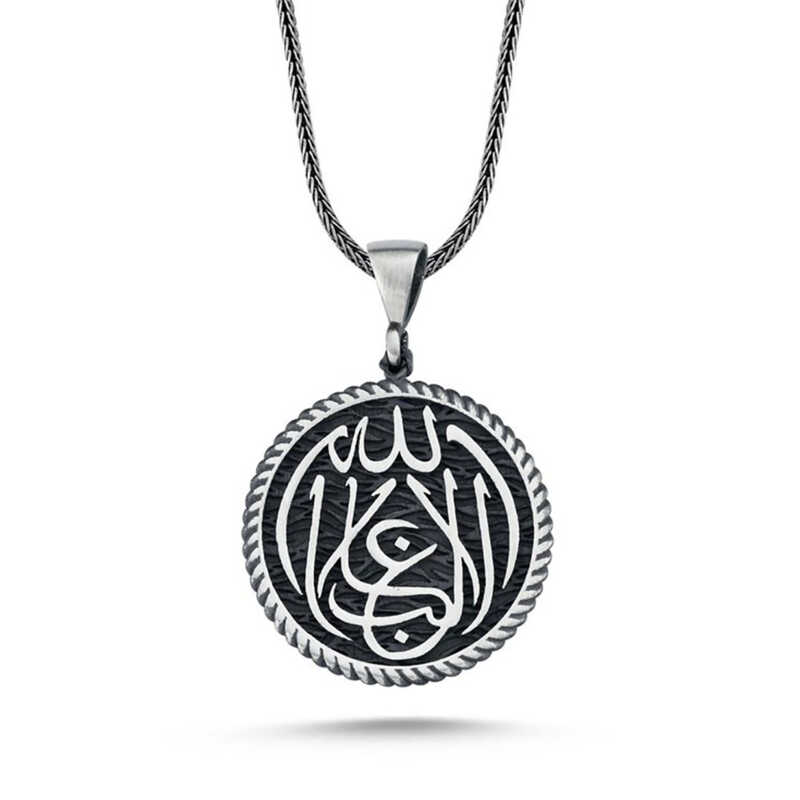 Gümüş üzerindeki La Galiba illallah kolye modeli günün her anında kullanabileceğiniz şık bir aksesuardır."La Galibe İllallah" sözü Yusuf Suresi"nin 21. Ayetinde yer almaktadır. ""Lâ Galibe İllâllah"" ifadesi ""Allah"tan başka galip yok"" anlamına gelmektedir. Yusuf suresi 21. Ayet"de Allah, şöyle der: " …vallahu galibun ala emrihi velakinne ekseren nasi la ya"lemun. " Bu ayetin anlamı şudur: "…Allah, her işinde galiptir, fakat insanların çoğu bunu bilmezler. " Bu ayetten hareketle "Allah"tan başka galip yoktur." sözü söylenilmiştir. Dünya adına gelinen nokta, başarı ne olursa olsun, gerçek galip Allah"tır der. Maneviyatı çok derin ve insana gerçekten motivasyon sağlıyor. Herkes gider, her şey çöker, gerçek tekdir. sen farkında olmasan da, O değişmez. Bu kolyeyi; kendinize ya da sevdiklerinize doğum gününde, babalar gününde ya da özel günlerde hediye edebilirsiniz. La galiba illallah yazılı kolye modeli 925 ayar gümüşten imal edilmiştir. Gümüş üzerine oksit kaplama yapılmıştır. Oksit kaplama yapılan gümüş kolye modelleri parlaklığını uzun süre muhafaza eder. Tüm kolyelerde olduğu gibi gümüş la illallah yazılı kolye modeli de el emeği ile üretilmiştir. Gümüş olan zincir boyu ortalama 55 cm"dir. Gümüş ve değerli taşlar nedeniyle belirtilen ortalama ürün ağırlığında ± %10 sapma olabilmektedir.