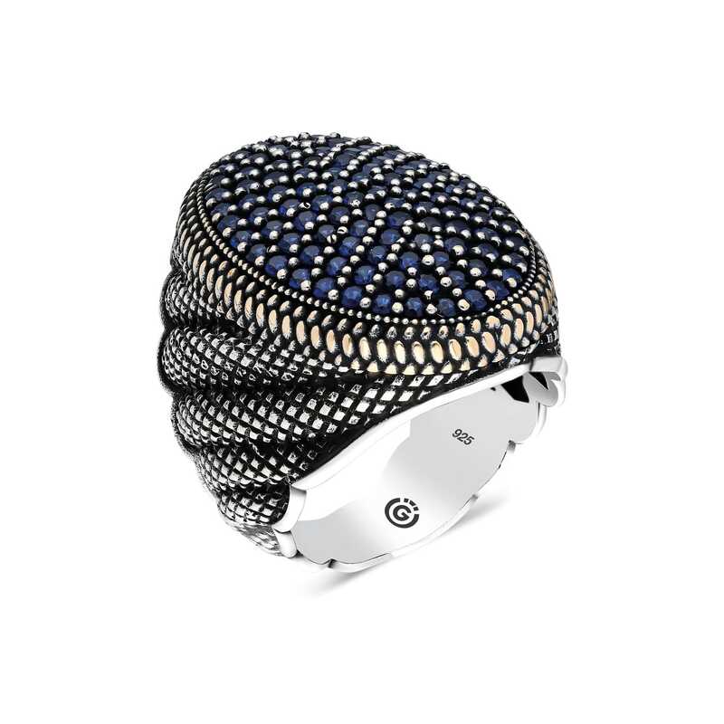 Gümüş Lacivert Zirkon Taşlı Oval Erkek Yüzük