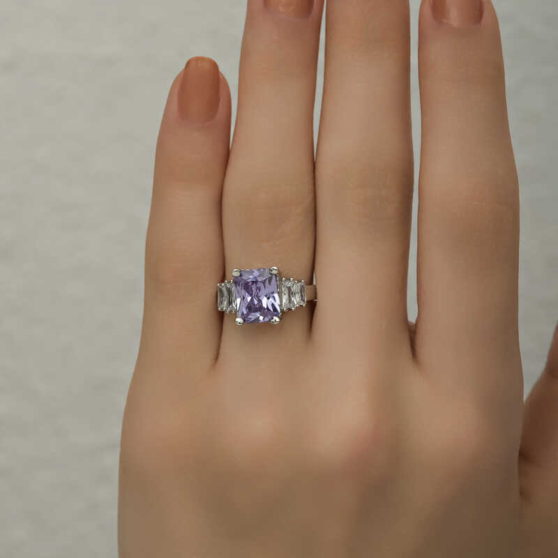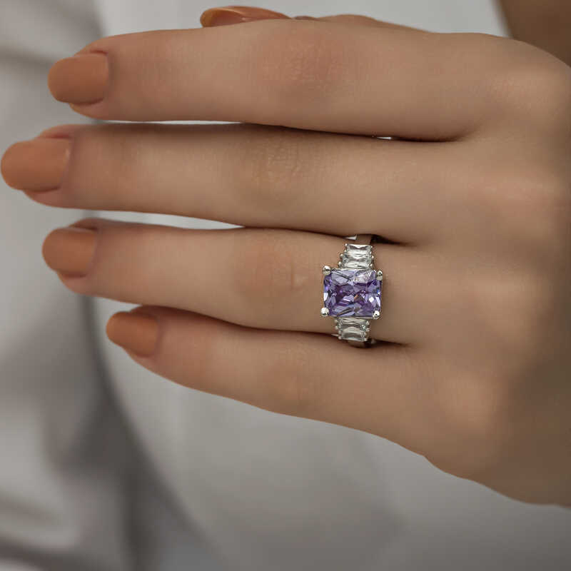 Gümüş Lila Baget Taşlı Bayan Yüzük