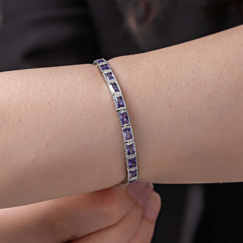 Gümüş Lila Taşlı Su Yolu Kadın Bileklik