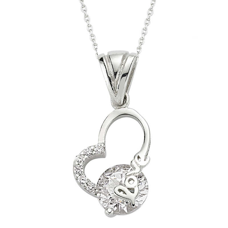 Gümüş Love Yazılı Bayan Kalp Kolye