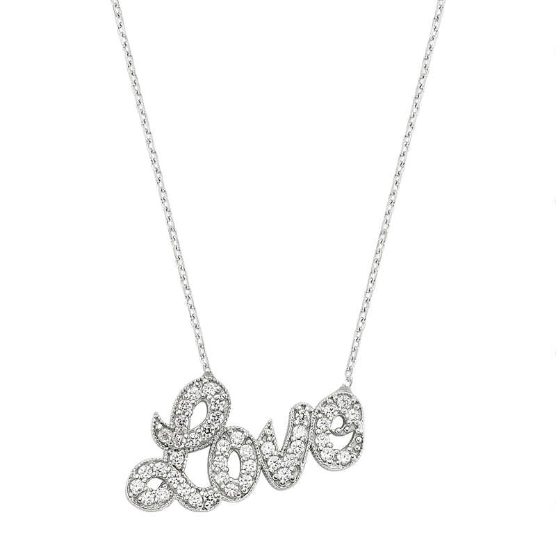 Aşkın ve sevginin bütün saflığıyla kucak açtığı en yüce tasarımdır love yazılı kolyeler… Aşkınızı her dilde ifade etmeye ne dersiniz? Aşk dolu bu kolye; sevgilinize doğum günü , sevgililer günü yada özel günlerde hediye ederek onları mutlu edebilirsiniz… Bu love kolye; 925 ayar gümüşten imal edilmiştir. Gümüş üzerine rodyum kaplama yapılmıştır. Rodyum kaplama yapılan gümüş kolye modelleri parlaklığını uzun süre muhafaza eder ve oksitlenmeyi geciktirir. Üzerinde bulunan taşlar zirkondur. Tüm gümüş bayan kolye modellerinde olduğu gibi gümüş love yazılı bayan kolye modeli de el emeği ile üretilmiştir. Gümüş ve değerli taşlar nedeniyle belirtilen ürün ağırlığında ± %10 sapma olabilmektedir.