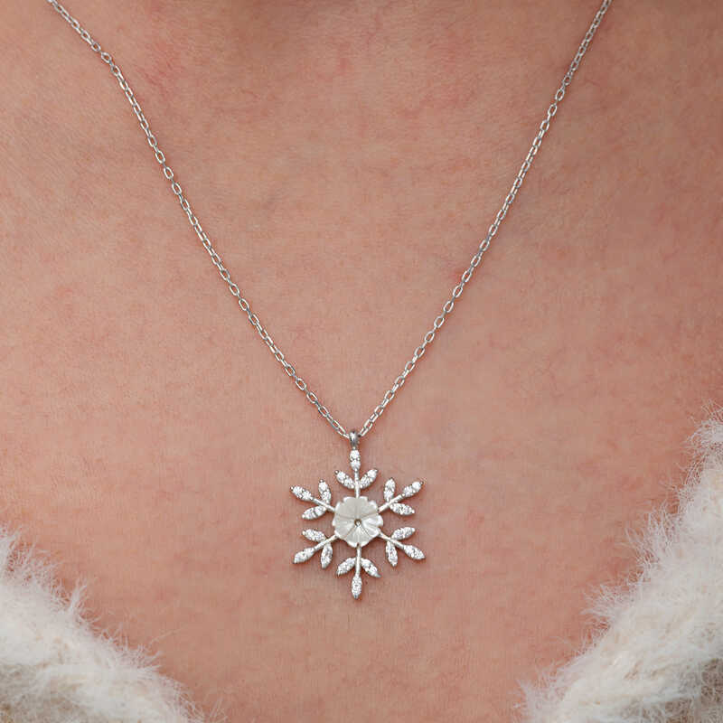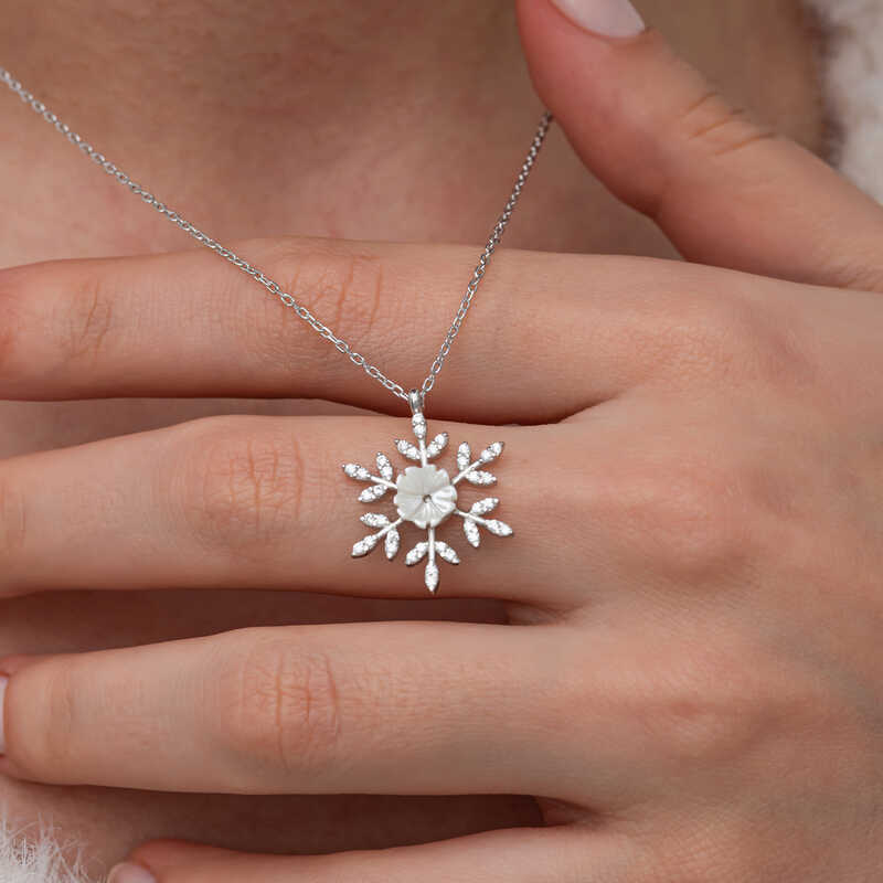Gümüş Manolya Çiçeği Kar Tanesi Kadın Kolye