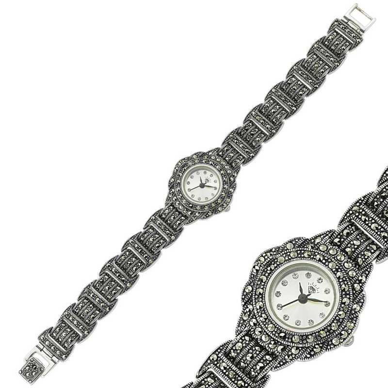 Işıl ışıl markazit taşlarıyla süslenmiş bu şık saat sizler için tasarlandı… Bu mükemmel saat; doğum günü hediyesi, sevgililer günü hediyesi veya annelere hediye olarak özel günlerde tercih edilebilecek mükemmel bir seçenektir. Bu şık saat modeli 925 ayar gümüşten imal edilmiştir. Saat üzerine oksit kaplama yapılmıştır. Diğer gümüş saatlerde olduğu gibi gümüş markazit taşlı bayan saat modeli de tamamen el emeği ile üretilmiştir. Gümüş ve değerli taşlar nedeniyle belirtilen ortalama ürün ağırlığında ± %10 sapma olabilmektedir.