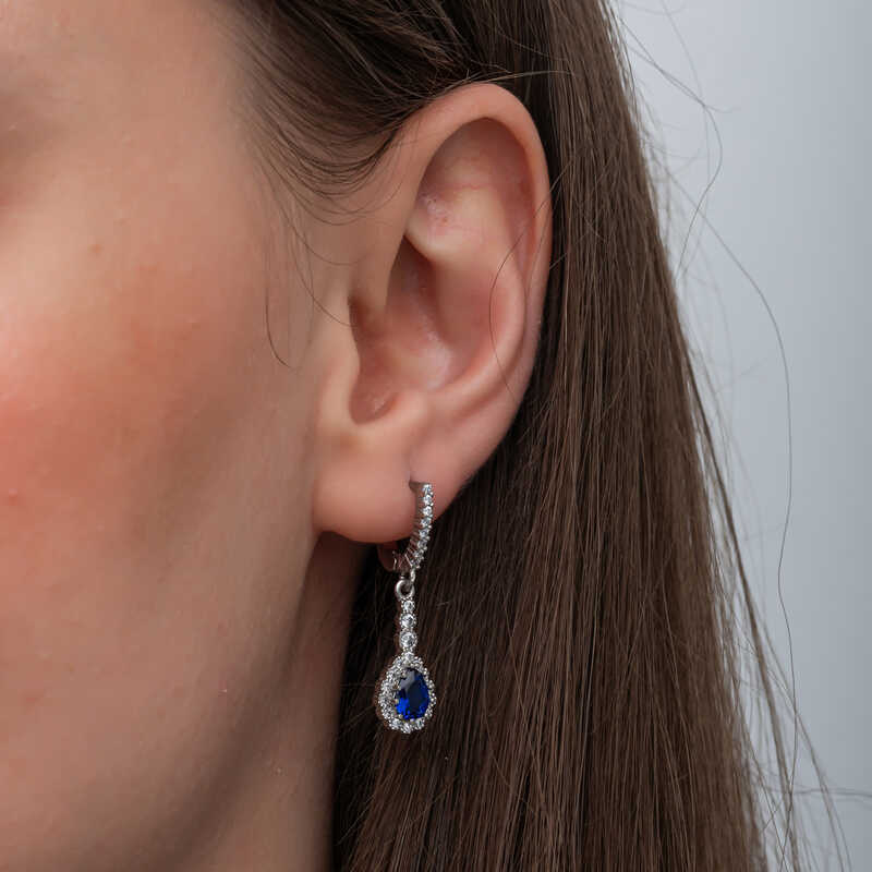 Gümüş Mavi Damla Zirkon Taşlı Kadın Küpe