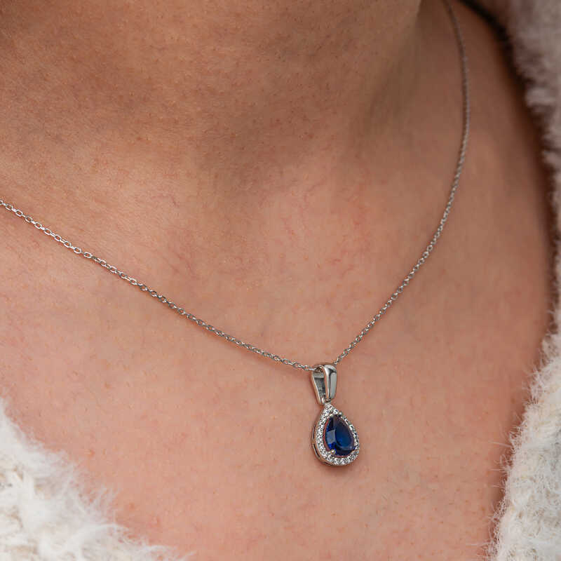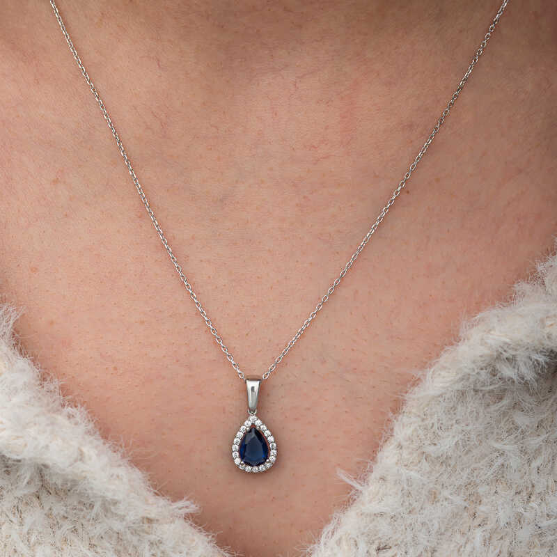 Gümüş Mavi Taşlı Damla Kadın Kolye