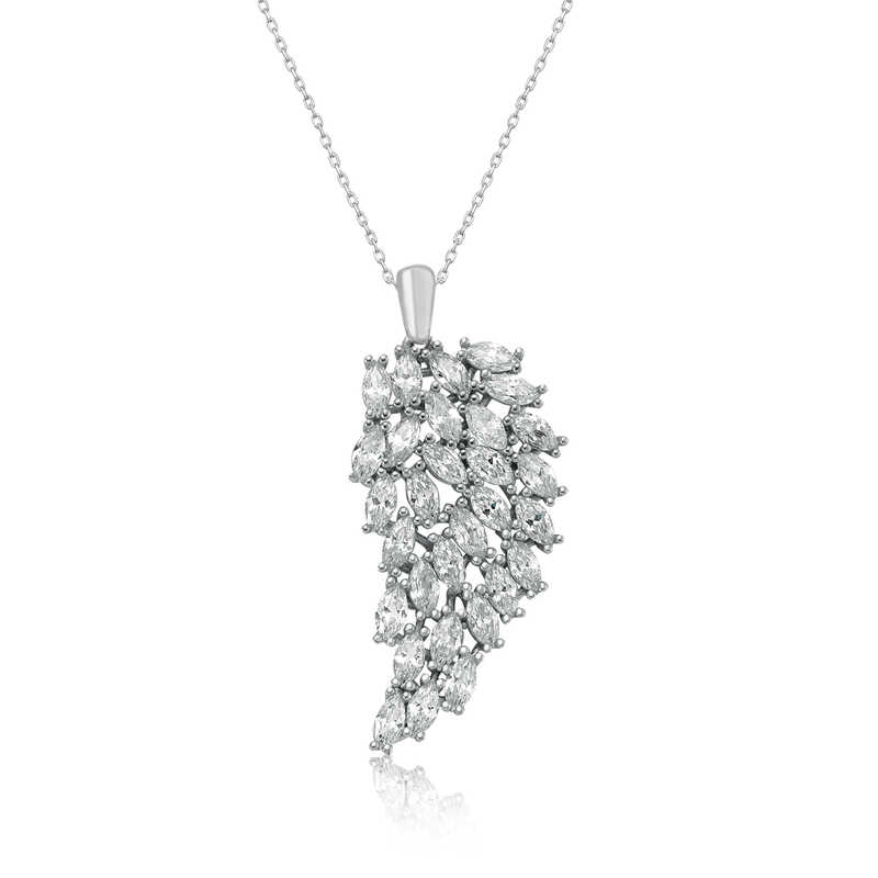 Zirkon taşlarla kaplı ışıl ışıl melek kanadı gümüş kolye ile kanatsız meleğinize tek eksiğini verip, onu sevindirebilirsiniz. "Benim sevgilim bir melek" diyorsanız, melek kanadı kolye tam da sevgilinize göre… Melek kanadı gümüş kolye, hayatınızın aşkı için uygun bir hediye olduğu kadar, anneniz ya da kız kardeşiniz için de son derece uygundur. Hayatınız da değer verdiğiniz mutlu etmek istediğiniz sevdiklerinizi meleklere layık bir hediye ile sevindirin. 925 ayar gümüşten imal edilmiştir. Gümüş üzerine rodyum kaplama yapılmıştır. Rodyum kaplama yapılan ürünler parlaklığını uzun süre muhafaza eder, oksitlenmesi gecikir. Gümüş melek kanadı bayan kolye üzerinde bulunan taşlar zirkondur. Tüm kolye modellerimizin tamamı el emeği ile üretilmiştir. Gümüş ve değerli taşlar nedeniyle belirtilen ortalama ürün ağırlığında ± %10 sapma olabilmektedir.