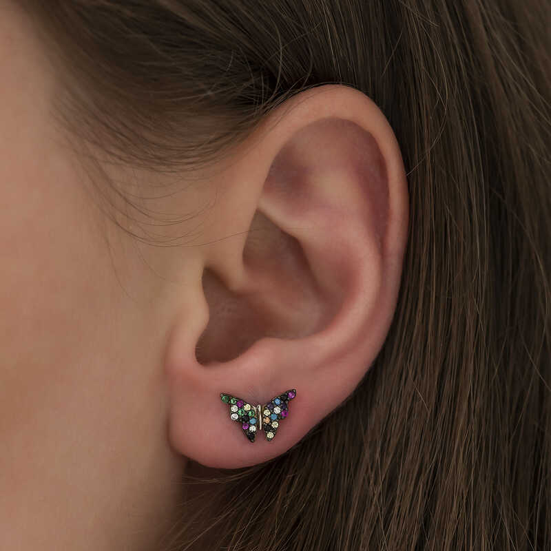 Her yaştan kadının stiline uyum sağlayabilecek farklı küpe modellerinin yer aldığı koleksiyonumuzda birbirinden özgün tasarımlı küpe modelleri sizleri bekliyor. Kelebek figürü kullanılarak hazırlanan küpe aklınızı başınızdan alacak. Günlük kullanıma uygun bir model olan küpe her an sizlerle birlikte. Göz kamaştıran yapısıyla tasarlanmış gümüş kelebek küpeyi severek kullanacaksınız. Bu koleksiyonda hem kendiniz, hem de sevdikleriniz için mutlaka uygun bir küpe bulacaksınız. Gümüş mix kelebek küpe, 925 ayar gümüşten imal edilmiştir. Gümüş üzerine rodyum kaplama yapılmıştır. Rodyum kaplama yapılan gümüş bayan küpeler parlaklığını uzun süre muhafaza eder, oksitlenmesi gecikir. Üzerinde bulunan renkli taşlar zirkondur. Tüm gümüş bayan küpelerde olduğu gibi bu gümüş mix kelebek küpe modeli de el emeği ile üretilmiştir. Gümüş ve değerli taşlar nedeniyle belirtilen ortalama ürün ağırlığında ± %10 sapma olabilmektedir.