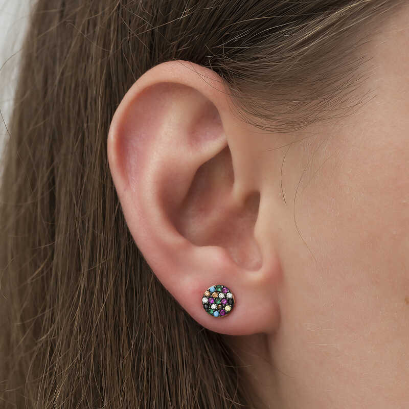 Gümüş Mix Taşlı Daire Küpe
