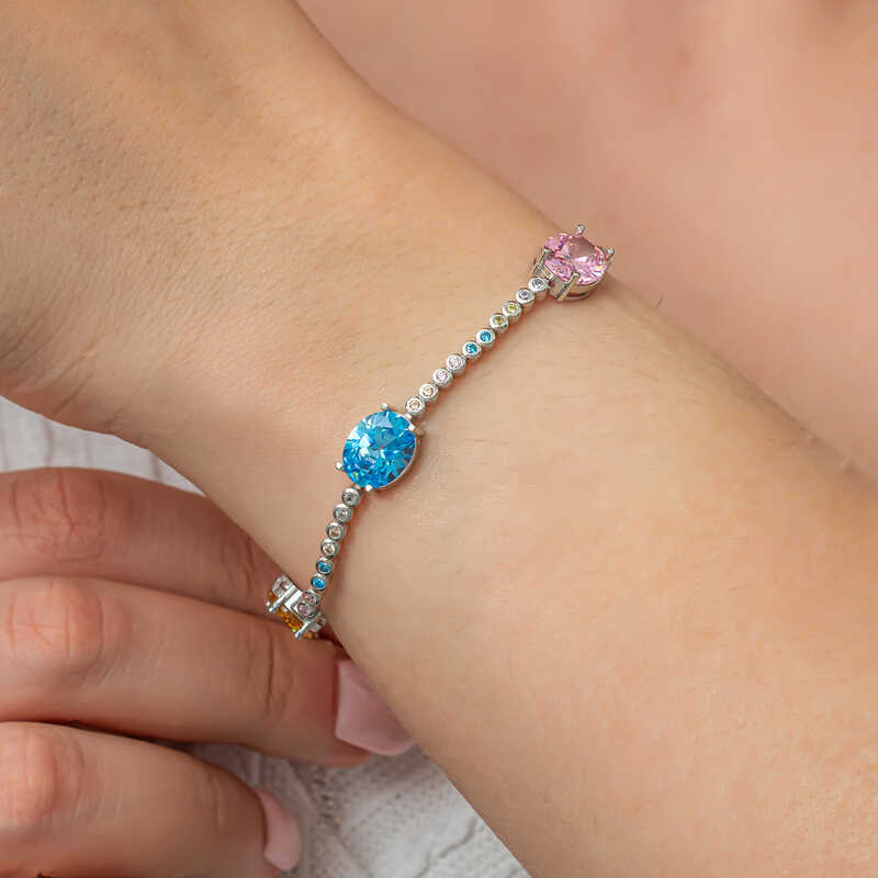 Gündelik hayatta, özel günler ve gecelerde tercih edebileceğiniz ışıl ışıl mix renk taşları ile yıldızları anımsatan bu bilekliği severek kullanacaksınız. Şık bir görünüm yakalamak isteyen tüm kadınlara hitap eden, modası geçmeyecek olan oval su yolu gümüş bileklik sizleri bekliyor. Gümüş oval su yolu kadın bileklik; doğum günü hediyesi, sevgililer günü hediyesi veya annelere hediye olarak özel günlerde tercih edilebilecek mükemmel bir seçenektir. Gümüş mix taşlı oval su yolu kadın bileklik 925 ayar gümüşten imal edilmiştir. Gümüş üzerine rodyum kaplama yapılmıştır. Rodyum kaplama yapılan kadın bileklikler parlaklığını uzun süre muhafaza eder ve oksitlenmesi gecikir. Tüm kadın bilekliklerde olduğu gibi gümüş mix taşlı oval su yolu kadın bileklik de el emeği ile üretilmiştir. Gümüş ve değerli taşlar nedeniyle belirtilen ortalama ürün ağırlığında ± %10 sapma olabilmektedir.