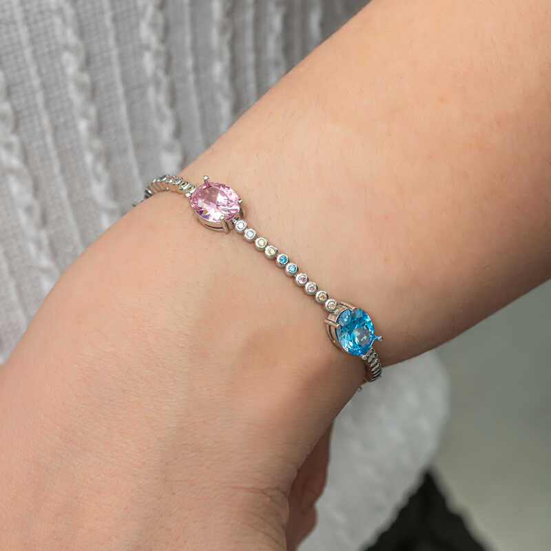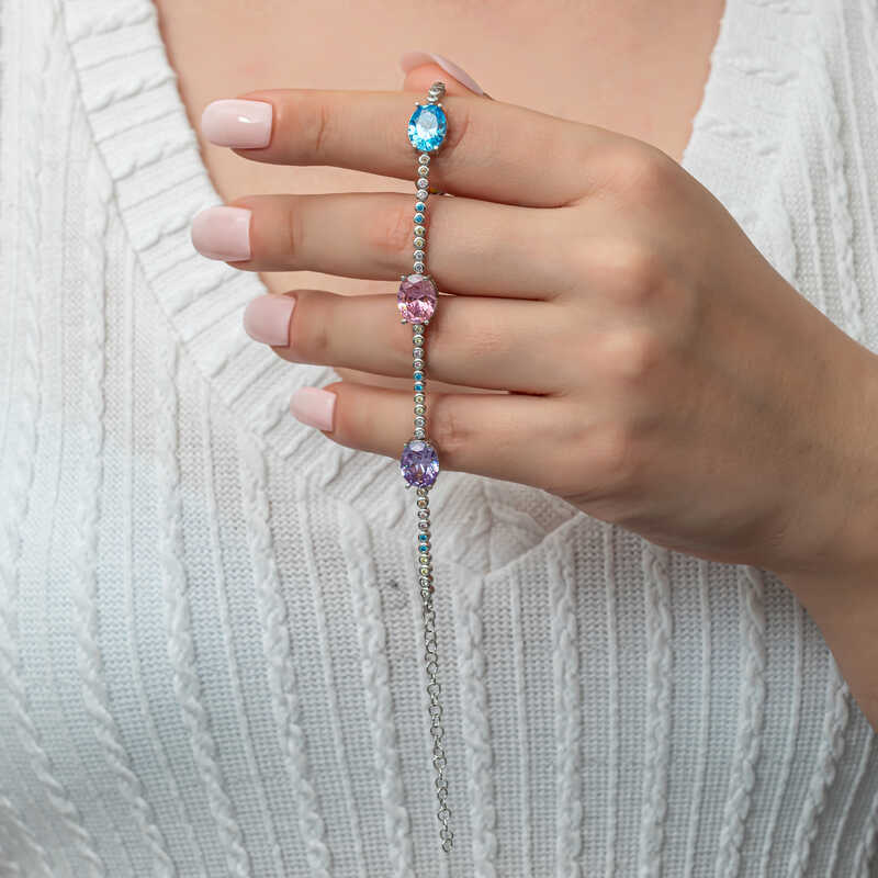 Gümüş Mix Taşlı Oval Su Yolu Kadın Bileklik