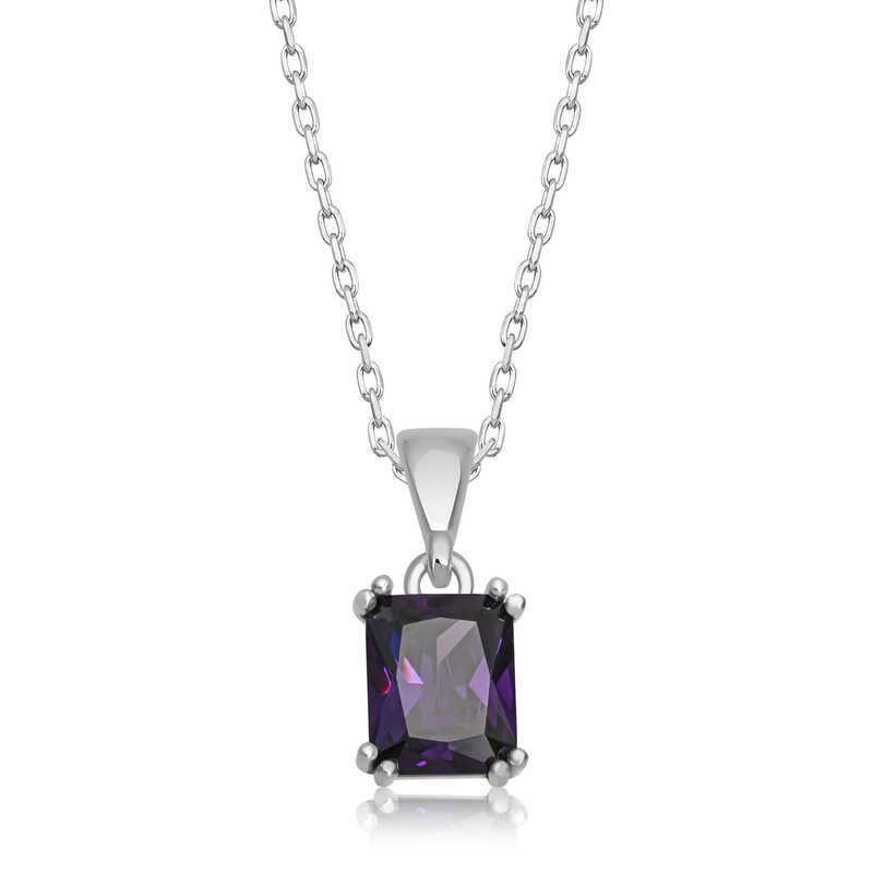 Gümüş Mor Baget Taşlı Kadın Kolye