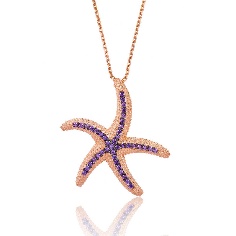 Gümüş Mor Deniz Yıldızı Bayan Kolye