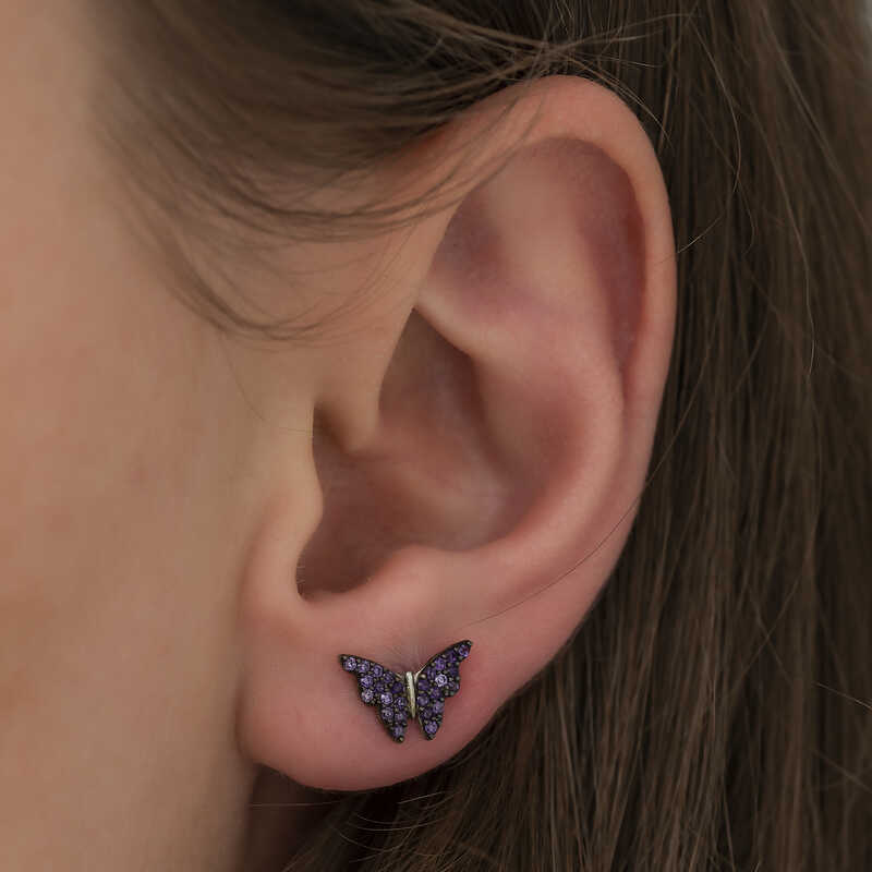 Her yaştan kadının stiline uyum sağlayabilecek farklı küpe modellerinin yer aldığı koleksiyonumuzda birbirinden özgün tasarımlı küpe modelleri sizleri bekliyor. Kelebek figürü kullanılarak hazırlanan küpe aklınızı başınızdan alacak. Günlük kullanıma uygun bir model olan küpe her an sizlerle birlikte. Göz kamaştıran yapısıyla tasarlanmış gümüş kelebek küpeyi severek kullanacaksınız. Bu koleksiyonda hem kendiniz, hem de sevdikleriniz için mutlaka uygun bir küpe bulacaksınız. Gümüş mor kelebek küpe, 925 ayar gümüşten imal edilmiştir. Gümüş üzerine rodyum kaplama yapılmıştır. Rodyum kaplama yapılan gümüş bayan küpeler parlaklığını uzun süre muhafaza eder, oksitlenmesi gecikir. Üzerinde bulunan taşlar zirkondur. Tüm gümüş bayan küpelerde olduğu gibi bu gümüş mor kelebek küpe modeli de el emeği ile üretilmiştir. Gümüş ve değerli taşlar nedeniyle belirtilen ortalama ürün ağırlığında ± %10 sapma olabilmektedir.