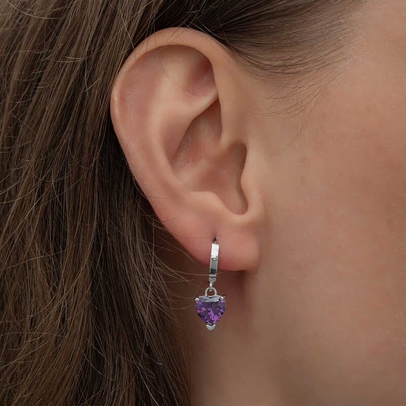 Gümüş Mor Taşlı Kalpli Kadın Küpe