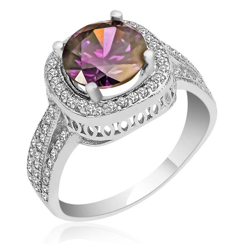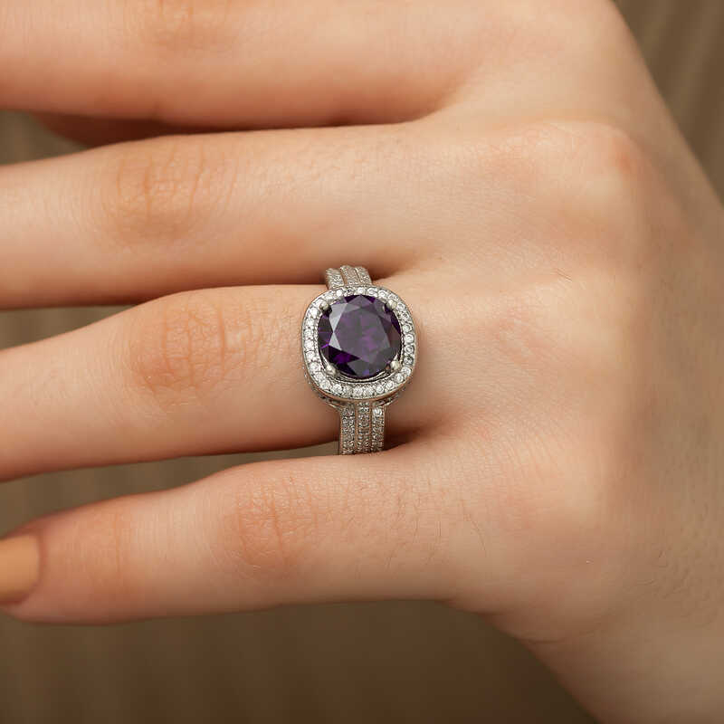 Gümüş Mor Yuvarlak Bayan Yüzük