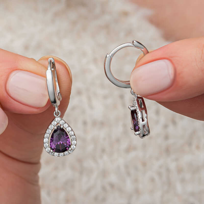 Gümüş Mor Zirkon Taşlı Damla Kadın Küpe
