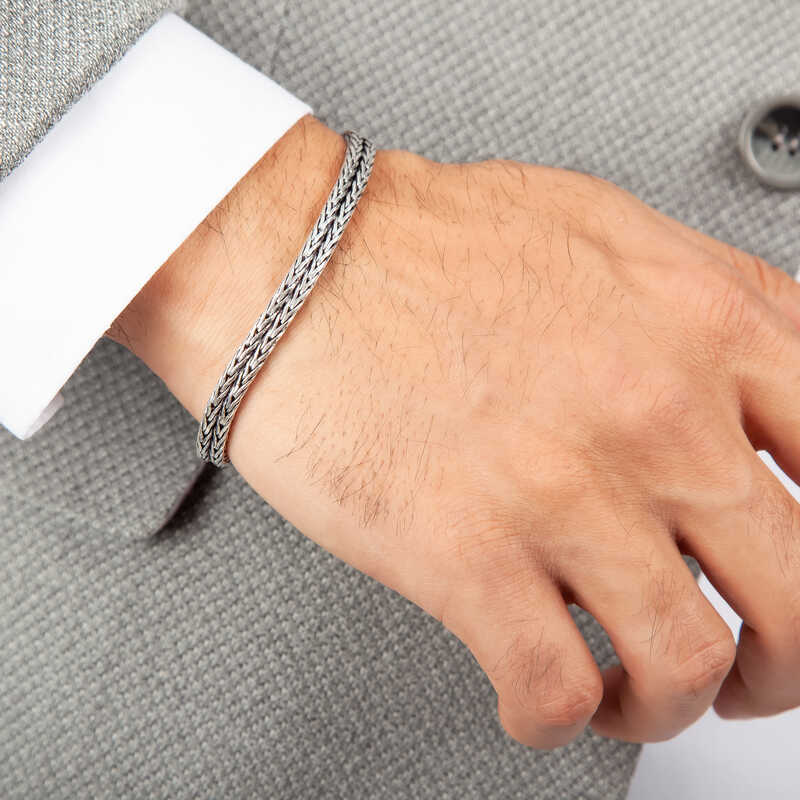 Gündelik hayatta veya özel günlerde tercih edebileceğiniz bu asil bilekliği severek kullanacaksınız. Şık bir görünüm yakalamak isteyen tüm erkeklere hitap eden, modası geçmeyecek olan gümüş oksitli erkek bileklik sizleri bekliyor. Gümüş erkek bileklik; doğum günü hediyesi, sevgililer günü hediyesi veya babalara hediye olarak özel günlerde tercih edilebilecek mükemmel bir seçenektir. Oksitli erkek bileklik; 925 ayar gümüşten imal edilmiştir. Gümüş üzerine oksit kaplama yapılmıştır. Oksit gümüş kaplama yapılan erkek bileklikler parlaklığını uzun süre muhafaza eder ve oksitlenmesi gecikir. Tüm erkek bilekliklerinde olduğu gibi gümüş oksitli erkek bileklik de el emeği ile üretilmiştir. Gümüş ve değerli taşlar nedeniyle belirtilen ortalama ürün ağırlığında ± %10 sapma olabilmektedir.