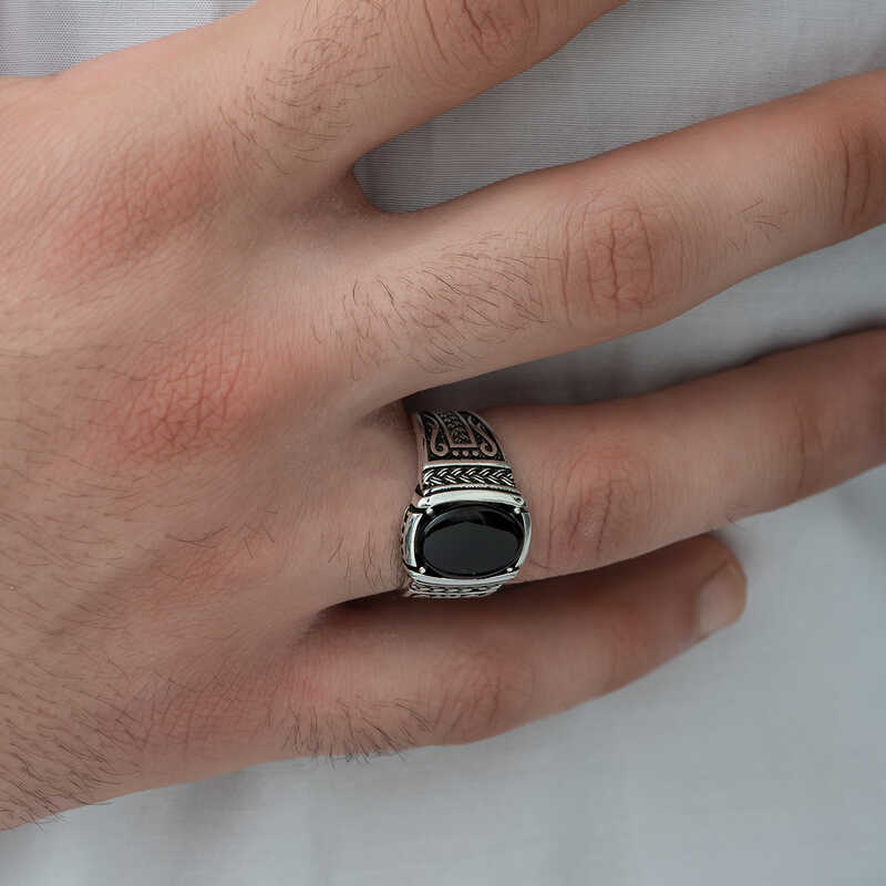 Milyonlarca yıl içerisinde yeryüzüne ulaşan oniks taşı, kayaçların ve bazı bileşenlerin ısınma ve soğumasıyla zaman içerisinde bir araya gelmesi üzerinden oluşmuş bir taştır. Oniks taşı şans taşı olarak bilinmekte olup yarı değerli bir taş türüdür. Oniks, işlenebilir olması ve estetik olarak şık durması sebebiyle eski çağlardan günümüze dek çeşitli süs eşyaları ve takıların yapımında kullanılmıştır. Oniks taşı toprak grubu burçları olan Boğa, Başak ve Oğlak’ın kutsal taşıdır. Bu burca sahip kişiler oniks taşlı aksesuarları tercih ederek negatif enerjiden korunabilirler. Bu şık yüzüğü; kendinize ya da sevdiklerinize doğum gününde, babalar gününde ve diğer özel günlerde hediye edebilirsiniz. Bu şık yüzük 925 ayar gümüşten imal edilmiştir. Gümüş üzerine oksit kaplama yapılmıştır. Oksit kaplama yapılan yüzükler otantik bir görünüme kavuşur. Tüm erkek yüzüklerde olduğu gibi gümüş oniks taşlı örgü desenli erkek yüzük modeli de el emeği ile üretilmiştir. Gümüş ve değerli taşlar nedeniyle belirtilen ortalama ürün ağırlığında ± %10 sapma olabilmektedir.