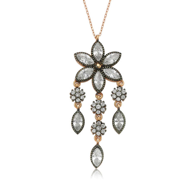 Papatya çiçeği temiz sevgi anlamını ifade eder. En büyük özelliklerinden biri her sapında bir tane olmasıdır. Bu güzellik tasarlanarak ortaya çıkan bu ışıl ışıl kolye zirkon taşlarla süslendi… Bu şık kolye; doğum günü hediyesi, sevgililer günü hediyesi veya annelere hediye olarak özel günlerde tercih edilebilecek mükemmel bir seçenektir. Papatya bayan kolye modeli 925 ayar gümüşten imal edilmiştir. Bu kolye üzerinde rose altın kaplama vardır. Rose altın kaplama yapılan ürünler parlaklığını uzun süre muhafaza eder, gümüş rengini pembe renge çevirir. Üzerinde bulunan ışıl ışıl taşlar zirkondur. Tüm gümüş bayan kolye modellerimizde olduğu gibi gümüş papatya bayan kolye de el emeği ile üretilmiştir. Gümüş ve değerli taşlar nedeniyle ürün ağırlığında ± %10 sapma olabilmektedir.