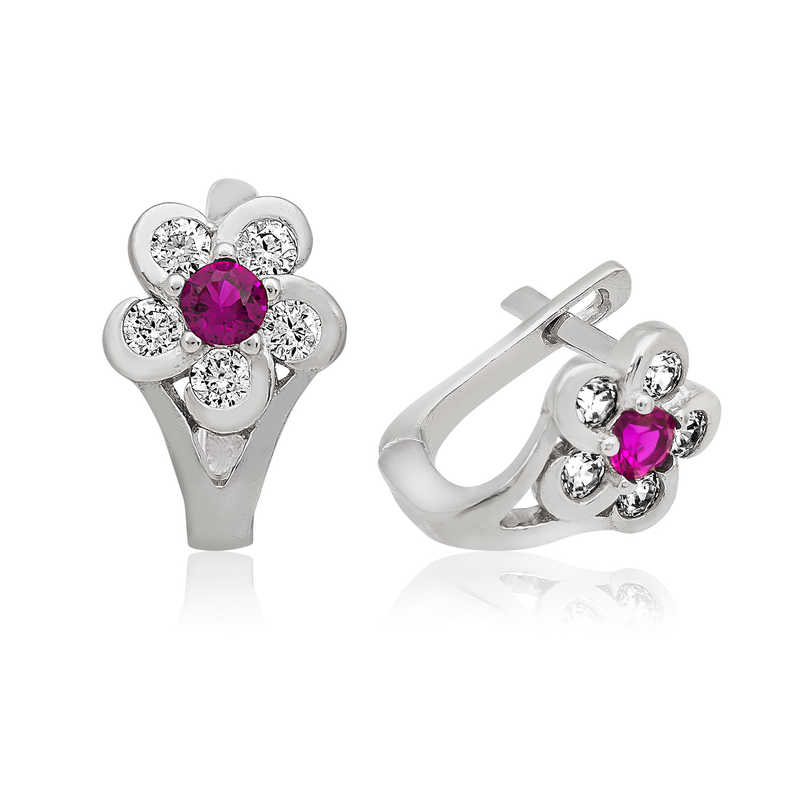 ​Gümüş Pembe Çiçek Çocuk Küpesi