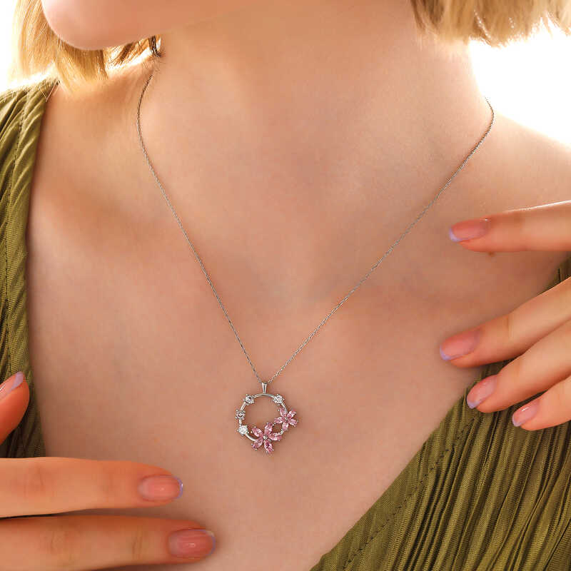 Gümüş Pembe Çiçek Kadın Kolye