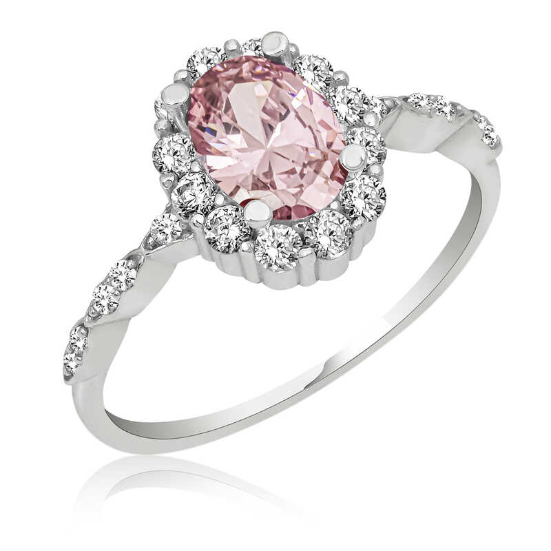 Gümüş Pembe Oval Taşlı Kadın Yüzük