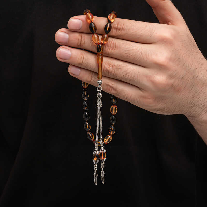 Gümüş Püskül Sıkma Kehribar Tesbih