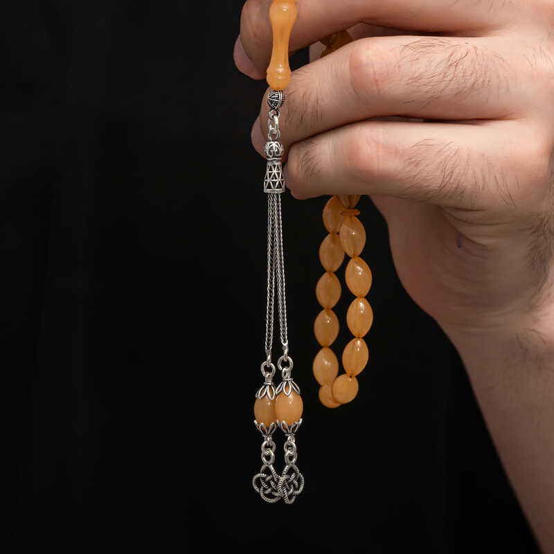 Gümüş Püskül Sıkma Kehribar Tesbih